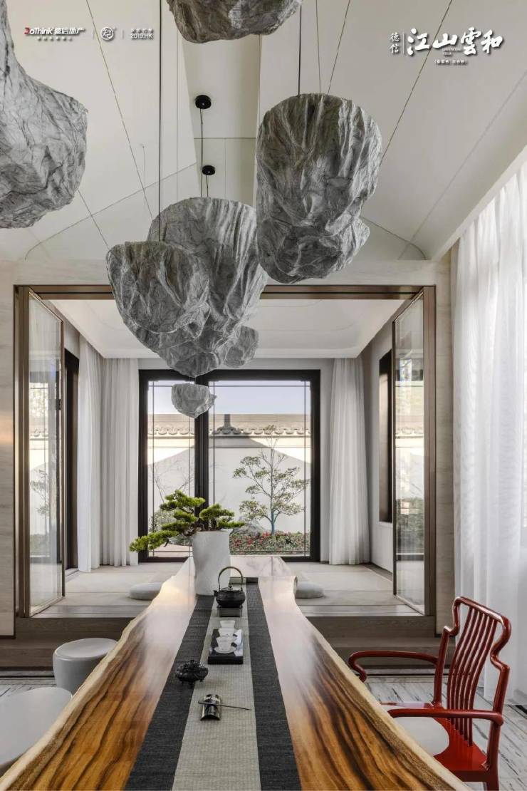 德信·江山云和,在当代生活情境中,悄无声息的将东方文化端庄大雅的礼制与温和舒怡的内涵融入其中,并贯穿始终,予生活更诗性的可能。
